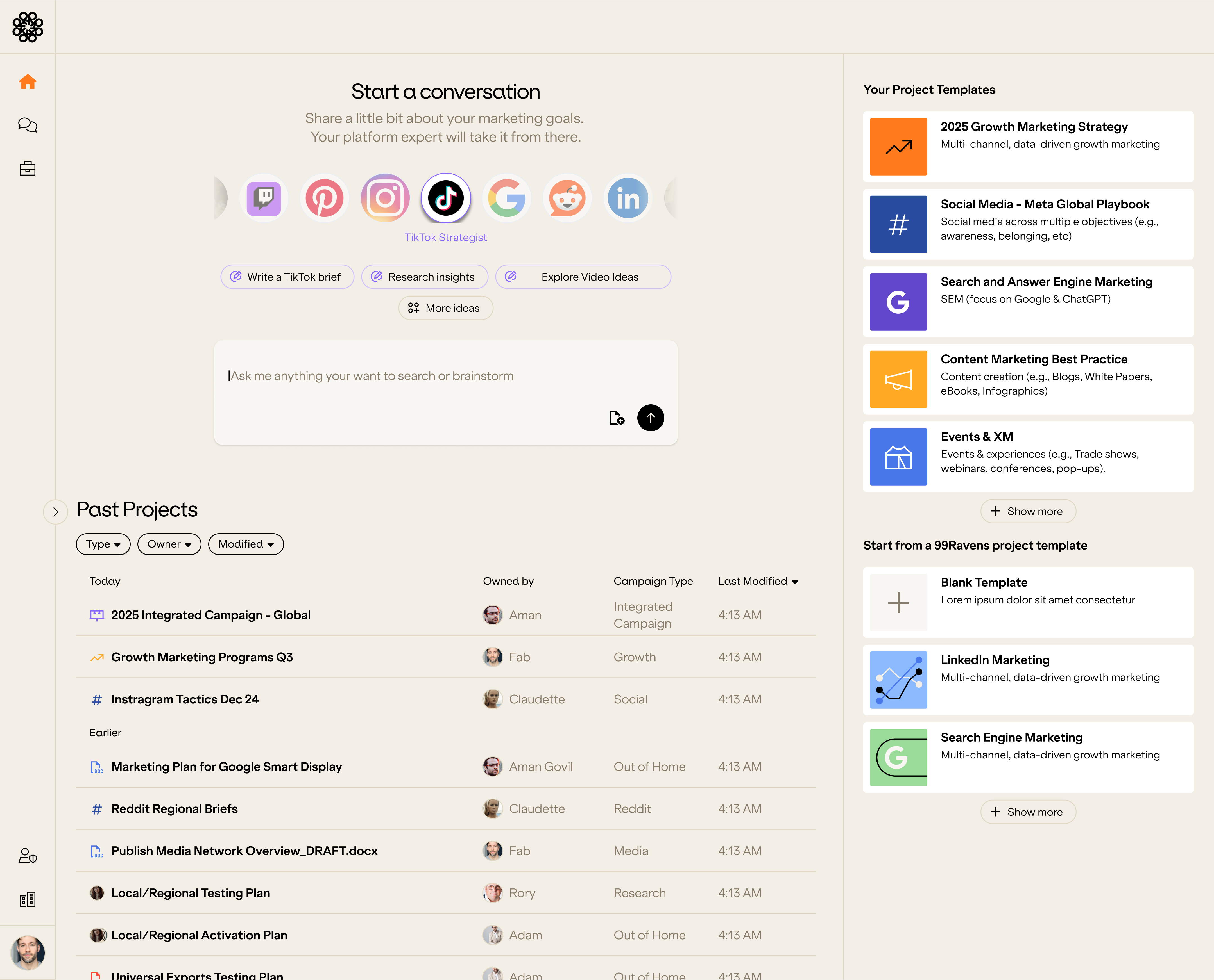 Pre-trained AI assistants from the world's top platforms — such as Google, Meta, Reddit, Pinterest, and more — to accelerate your marketing strategy.